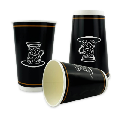 أكواب ورقية أسود حروف عربية طبقتين 16-اونصة- 10 قطعة